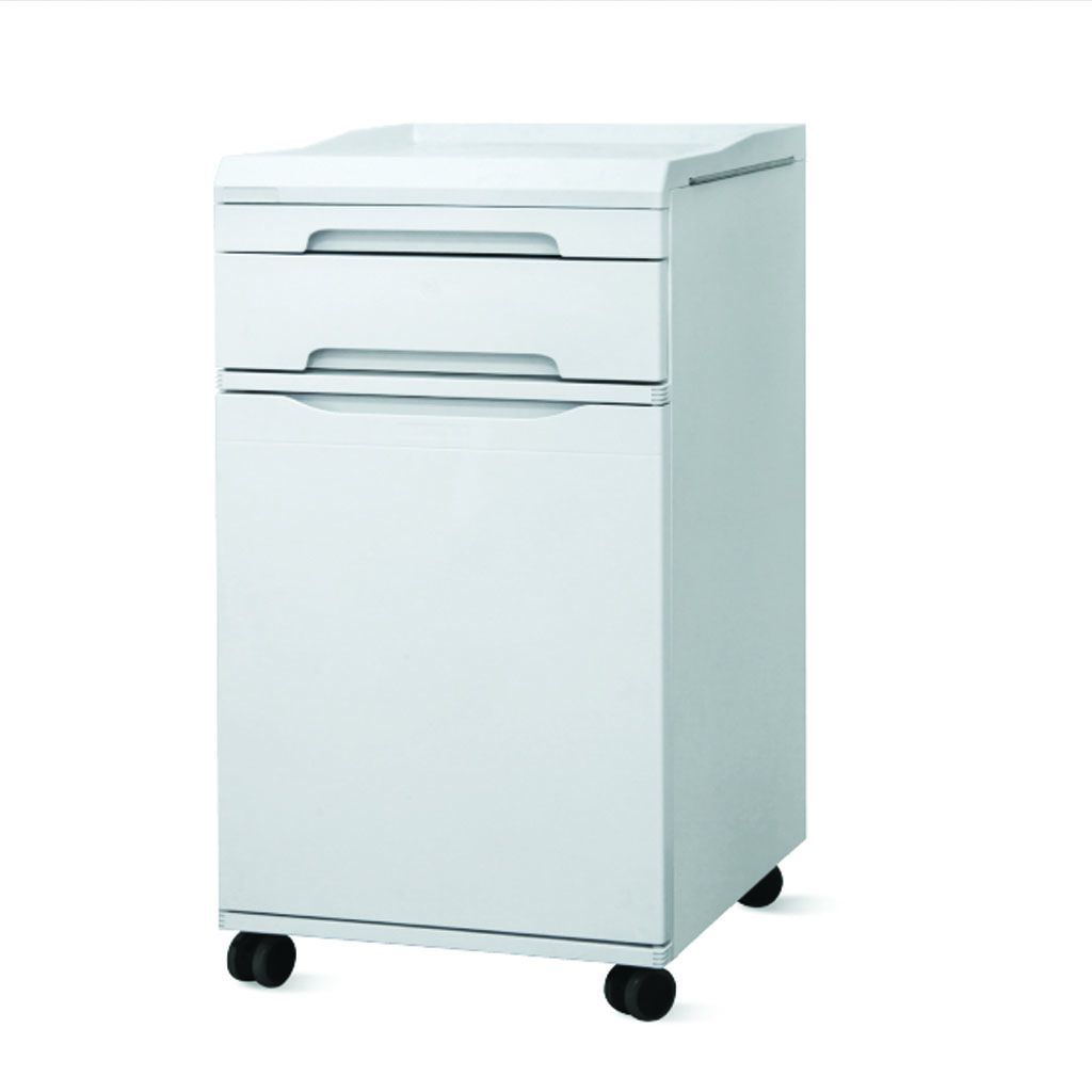 Cabinet: Features a drawer and a cabinet with adjustable stainless steel towel hooks, 2-inch double-sided wheels (2 with brakes, 2 without), and handles on the drawer and door.