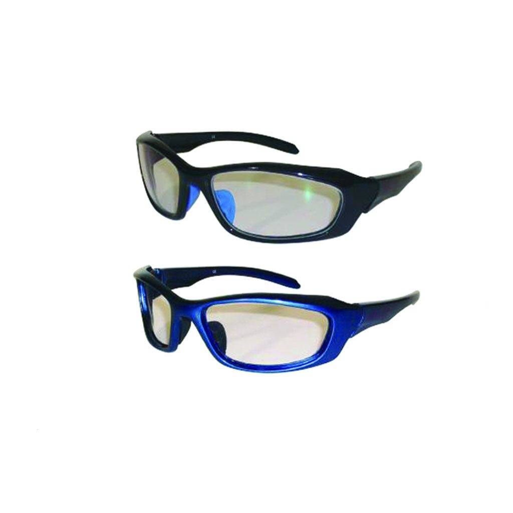 X-Ray Protective Glasses WideFrame Glasses (LG-900B) Coating: Anti-reflective lenses, Color:BlueAnti-reflective coating, and a 70g designer frame $1.00 Request a Quote Stylish Glasses Lenses: 0.5mm lead equivalent RayShield® NewMillenia™ lightweight composite lenses. Frame: Attractive black or blue designer frame, weighing 70 grams. Side Shields: 0.25mm solid lead. Coating: Anti-reflective lenses. Model: LG-900B WideFrame Glasses Lead Equivalence: 0.5mm